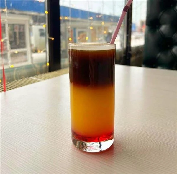 Одинарный эспрессо, апельсиновый сок, сироп гренадин.