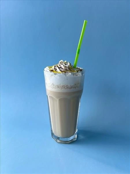 Одинарный эспрессо, сливки 11%, топинг ваниль, взбитые сливки, зерна кофе для украшения.